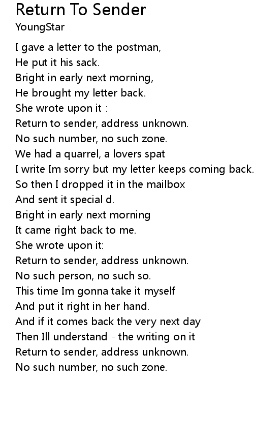 | Song | Return To Sender |