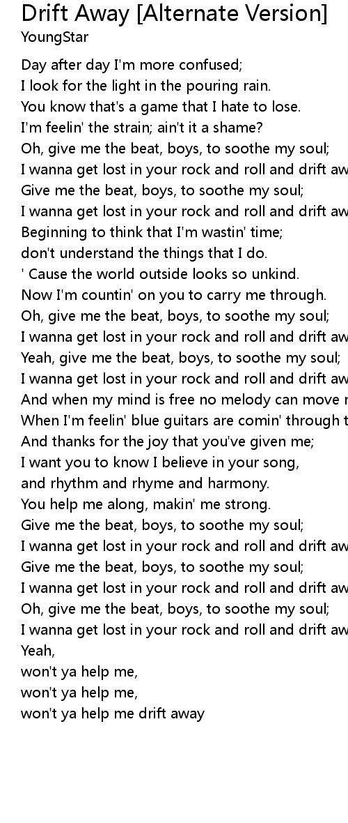 won't ya help me drift away |