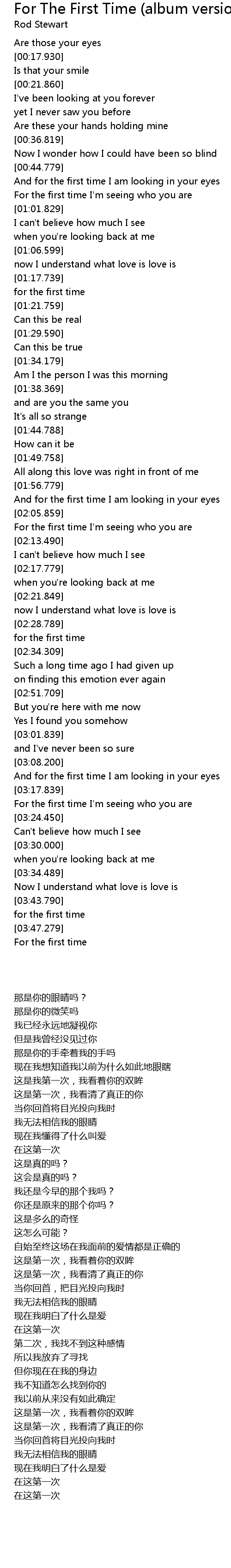 And for the first time I am looking in your eyes |