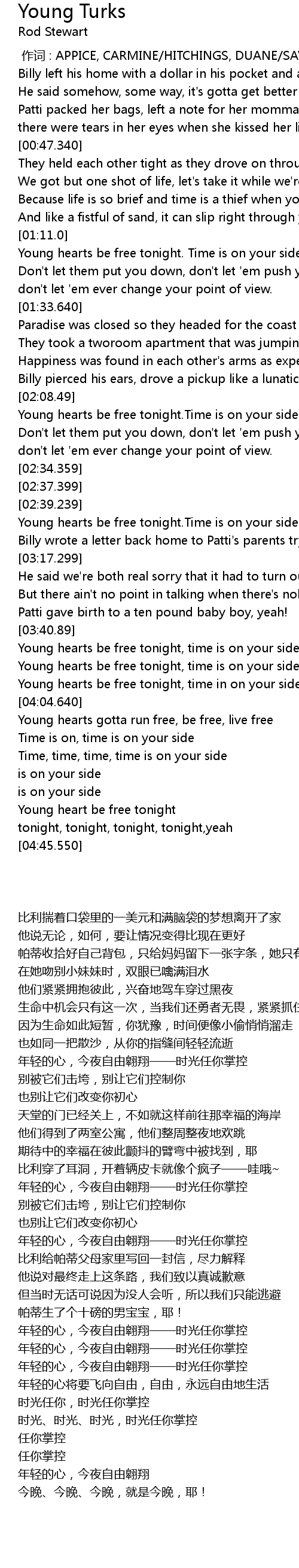 | [04:29.500] | Young heart be free tonight |