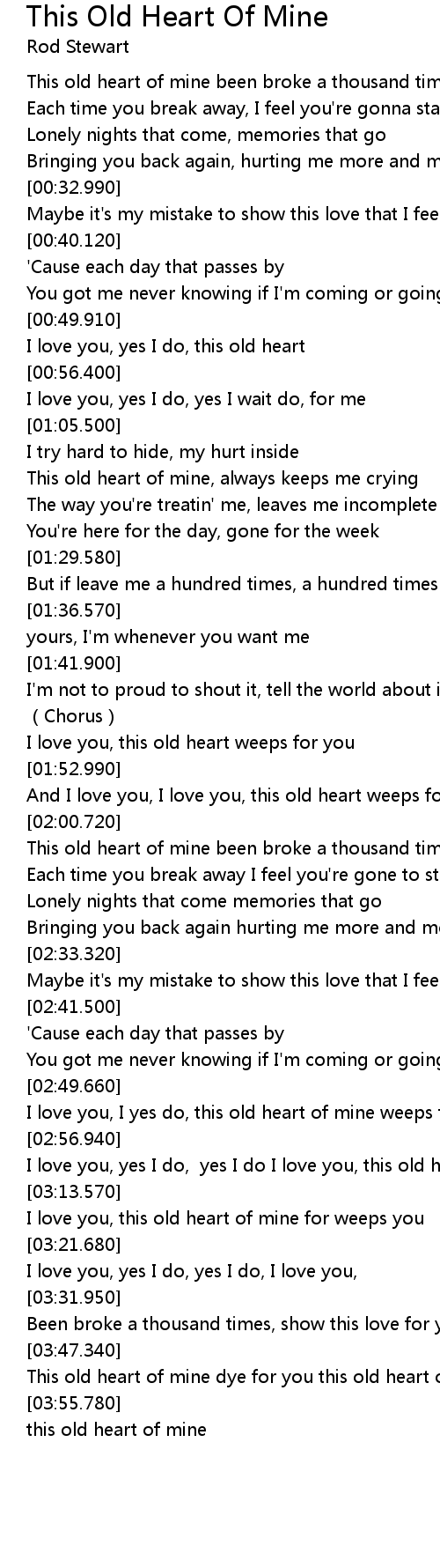 | [03:49.650] | This old heart of mine dye for you this old heart of mine, |
