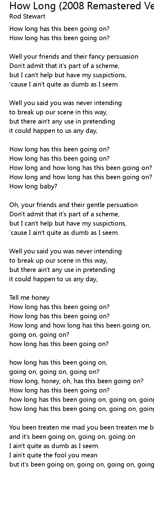 How long and how long has this been going on, |