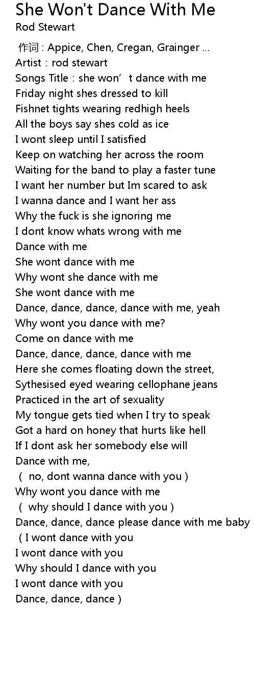 | [00:02.08] | Songs Title: she won' t dance with me |