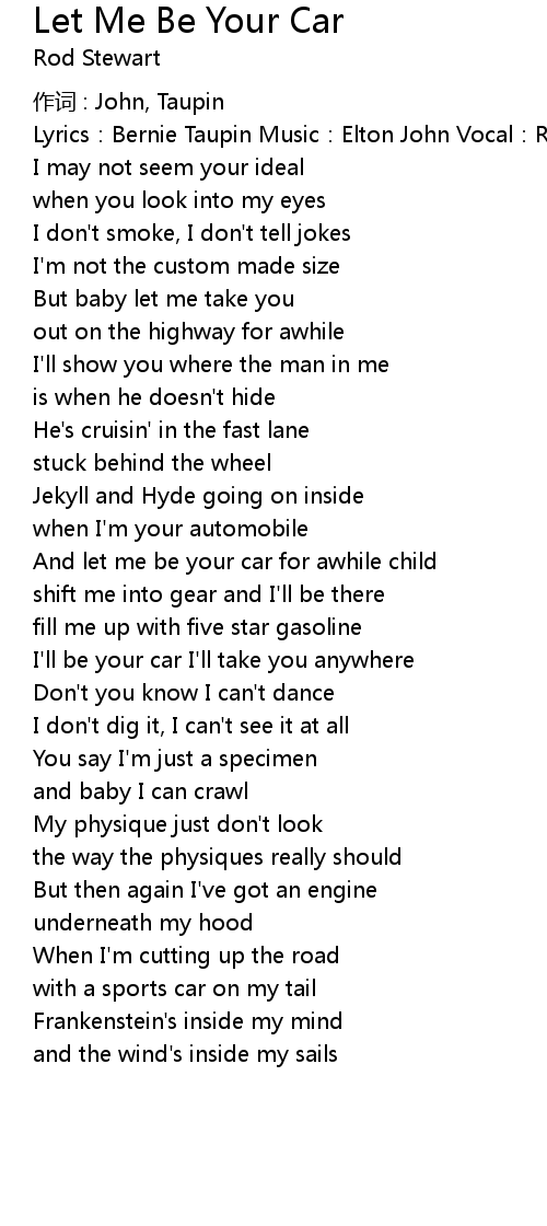 | I' ll be your car I' ll take you anywhere | |