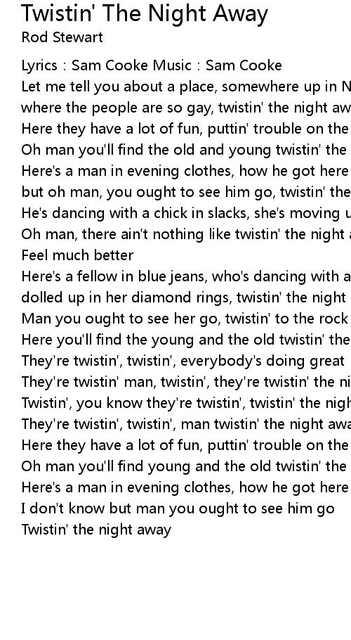 | Twistin', you know they' re twistin', twistin' the night away | |