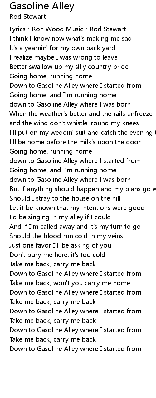 | down to Gasoline Alley where I was born | |