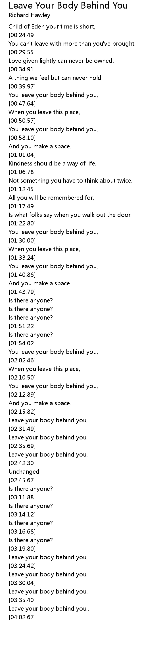 | [01:18.62] | Is what folks say when you walk out the door. |