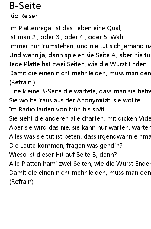 | Und wenn ja, dann spielen sie Seite A, aber nie tun sie den Schei umdrehen. | |