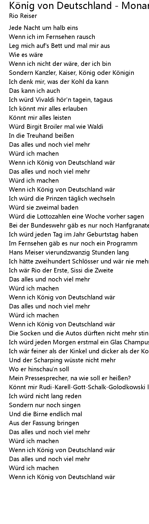 | Ich hätte zweihundert Schlösser und wär nie mehr pleite | |