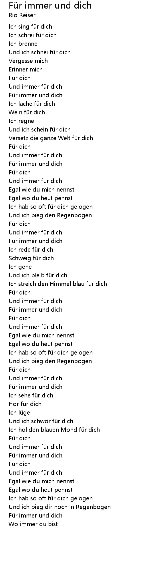 | Song | Für immer und dich |