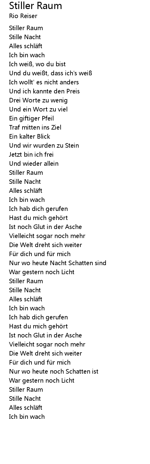 | Song | Stiller Raum |