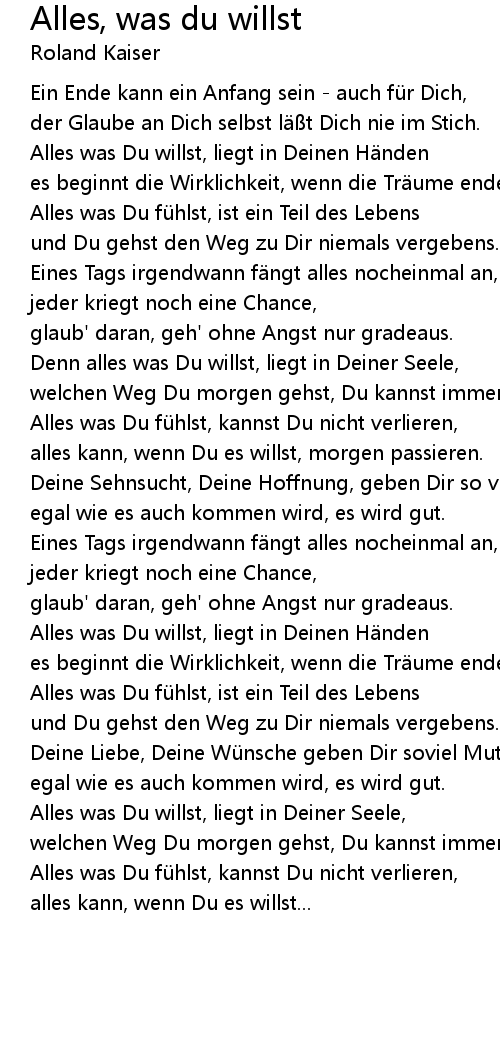| Alles was Du willst, liegt in Deiner Seele, | |