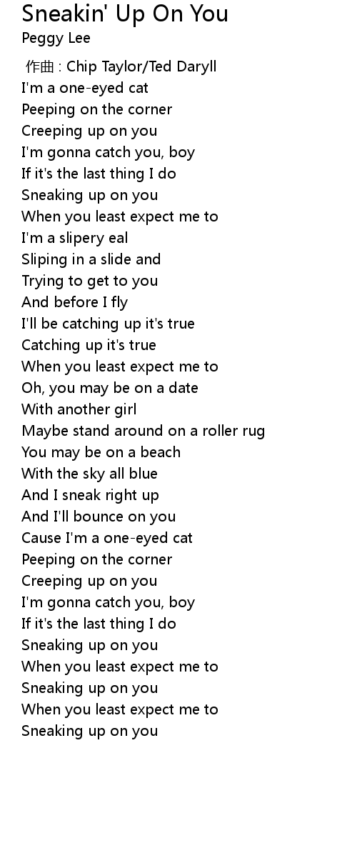 | [01:31.729] | Cause I'm a one-eyed cat |