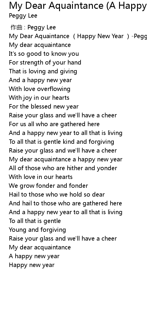 | [00:00.00] | My Dear Aquaintance Happy New Year Peggy Lee jí lǐ |