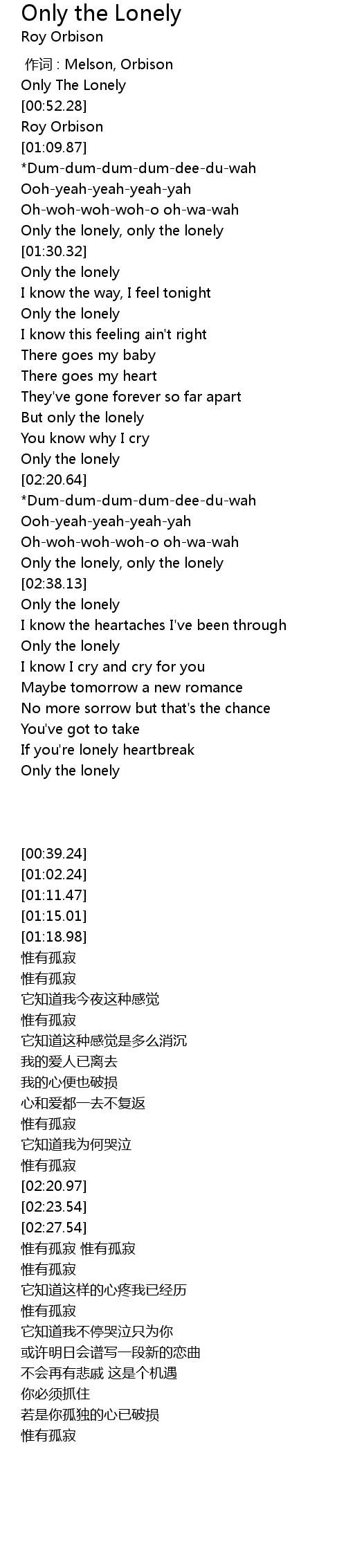| [00:00.00] | zuò cí : Melson, Orbison |