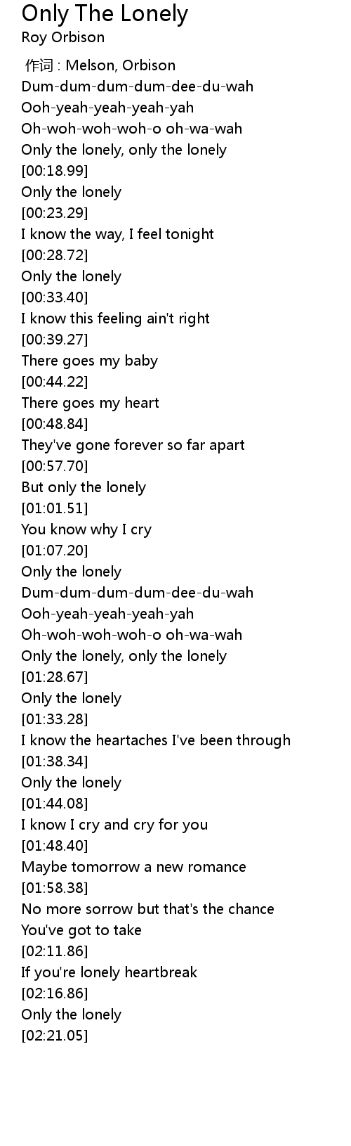 | [00:00.00] | zuò cí : Melson, Orbison |