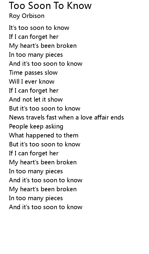 Too Soon To Know Lyrics
