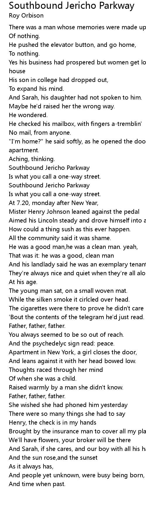 Song Southbound Jericho Parkway