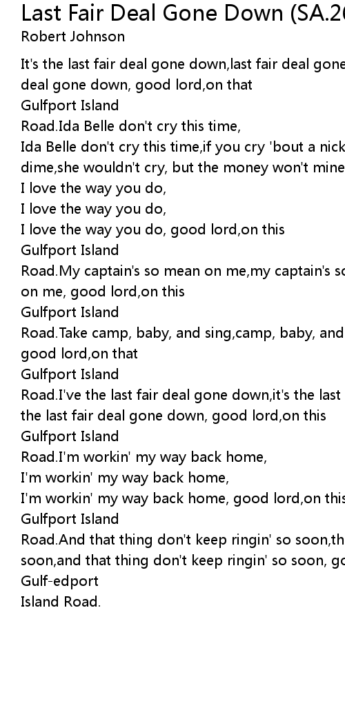 Last Fair Deal Gone Down (SA.2631-1) - SA.2631-1 Lyrics