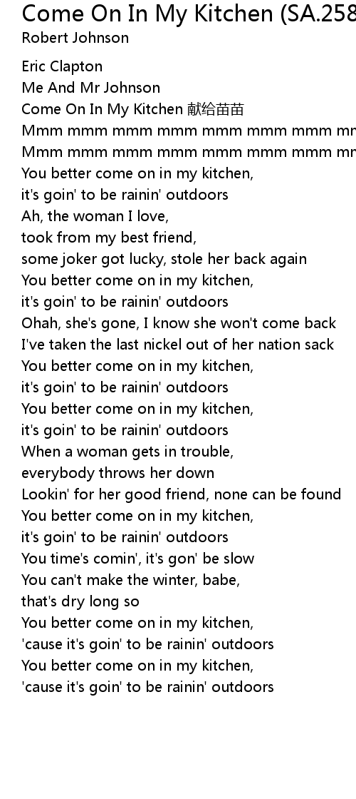 | [00:03.93] | Come On In My Kitchen 献给苗苗 |