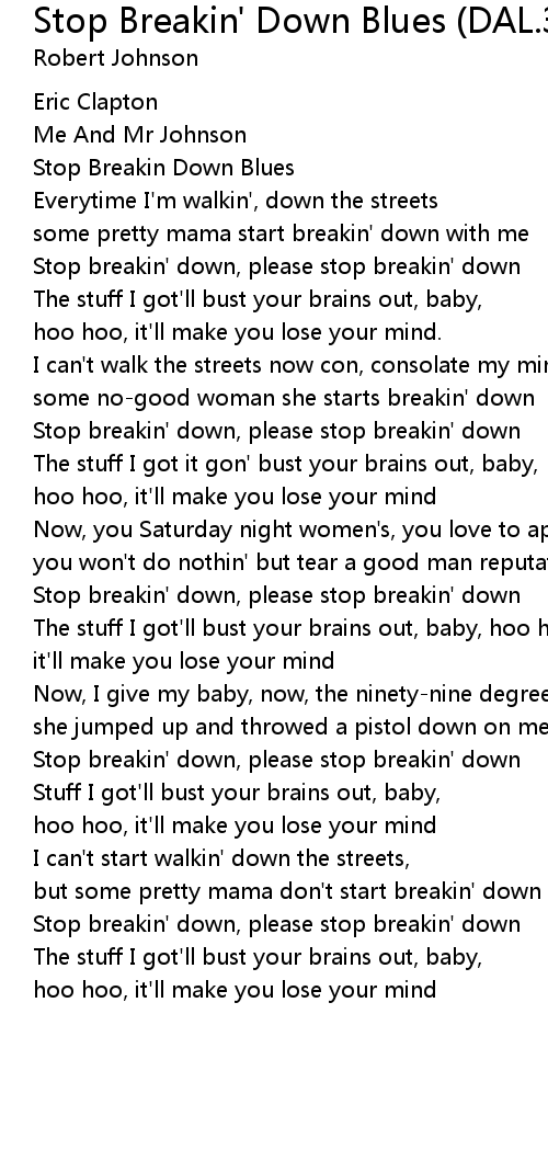 Stop Breakin' Down Blues (DAL.399-1) - DAL.399-1 Lyrics