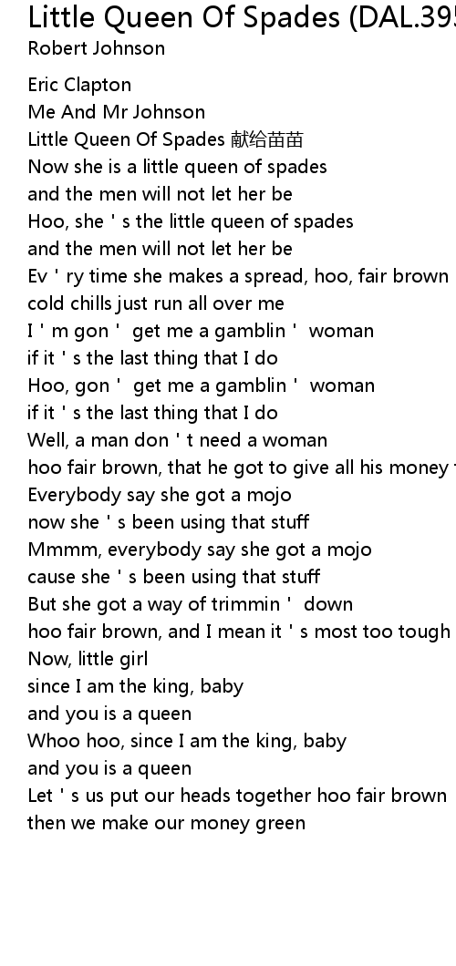 | [00:06.81] | Little Queen Of Spades 献给苗苗 |