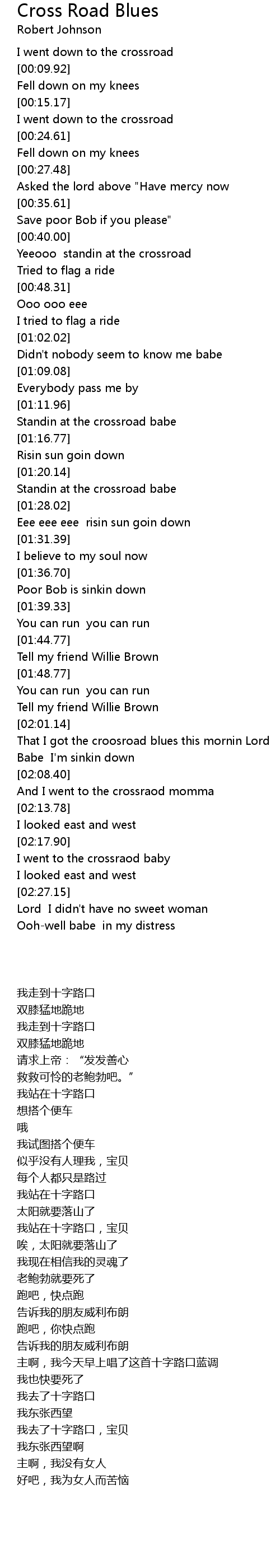 That I got the croosroad blues this mornin Lord |