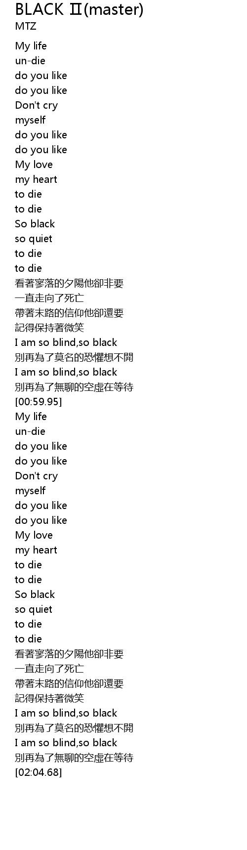 | [00:53.83] | I am so blind,so black |