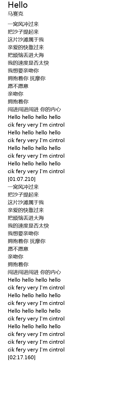 | [01:51.520] | Hello hello hello hello |