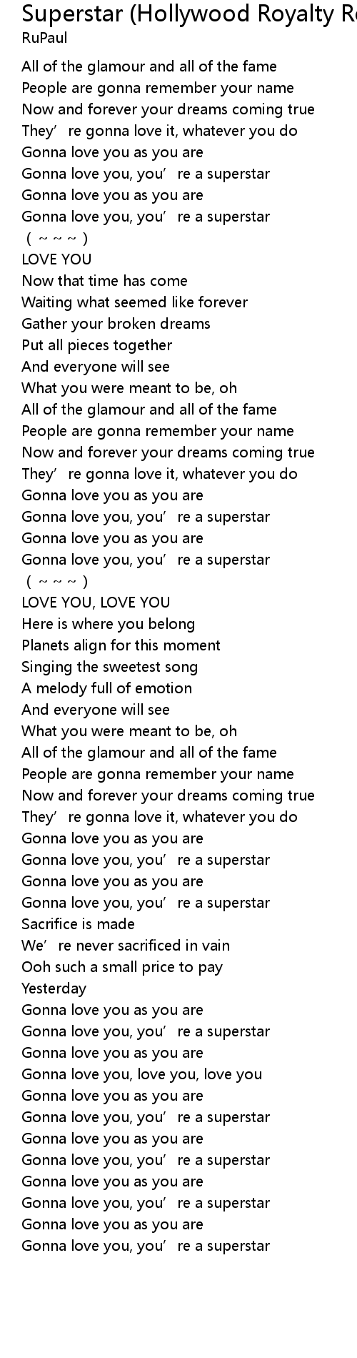 | [01:33.479] | Gonna love you, you’re a superstar |