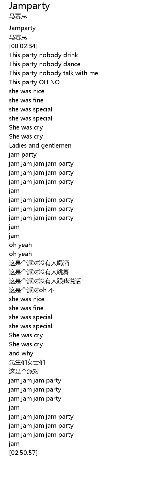 | [02:16.99] | jam jam jam jam party |
