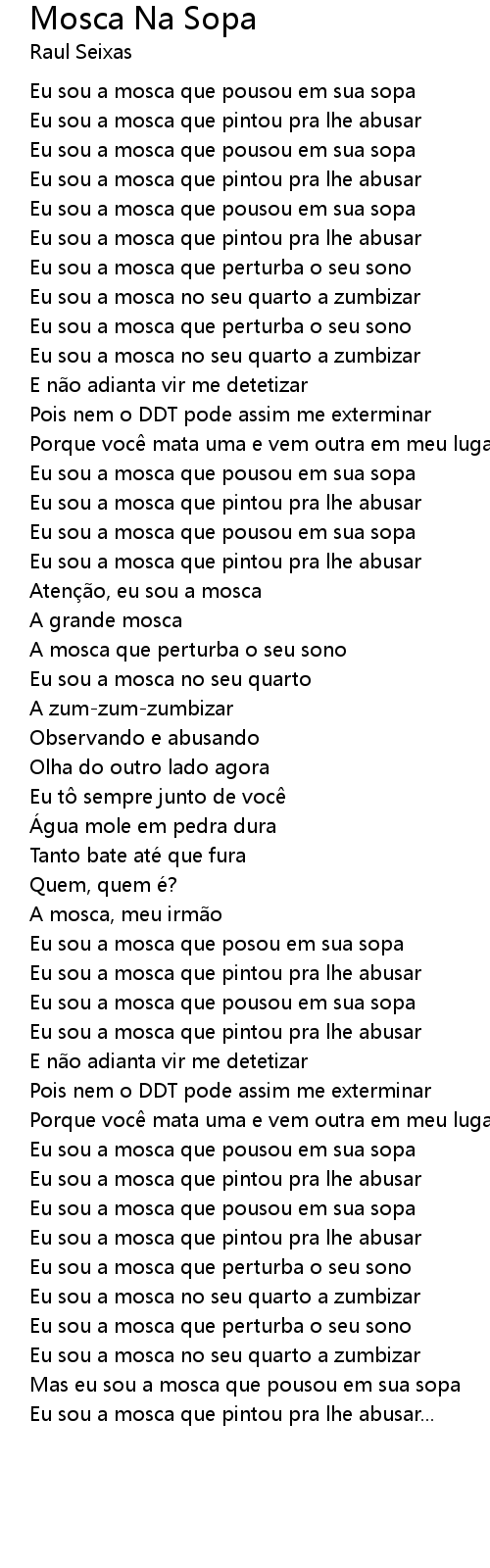 | Mas eu sou a mosca que pousou em sua sopa | |