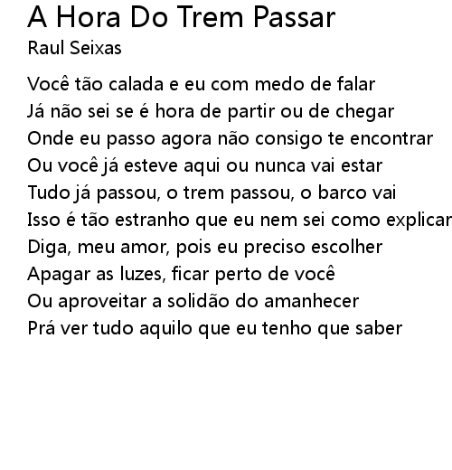 | Song | A Hora Do Trem Passar |