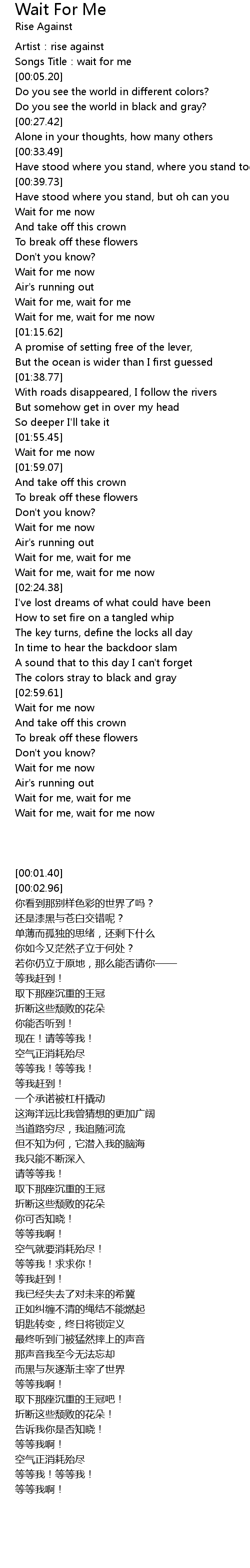 | [02:16.29] | Wait for me, wait for me |