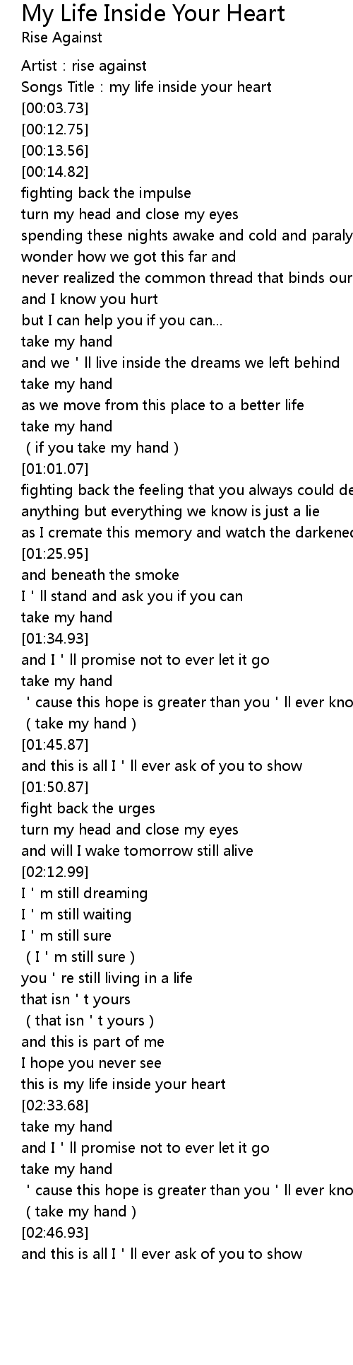 | [01:20.45] | as I cremate this memory and watch the darkened ashes rise |
