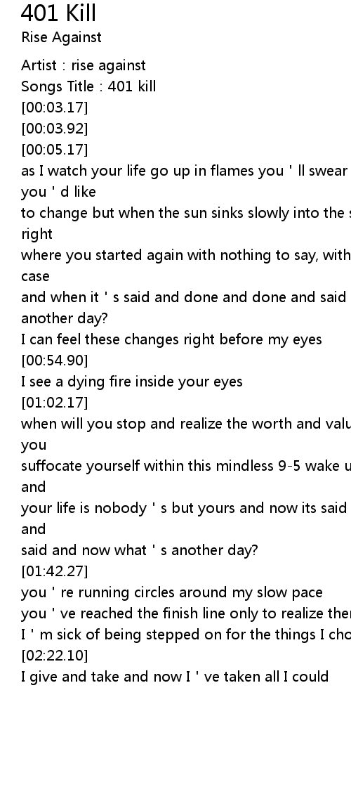 | [00:01.11] | Artist: rise against |