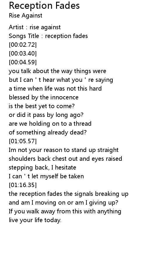 | [00:00.65] | Artist: rise against |