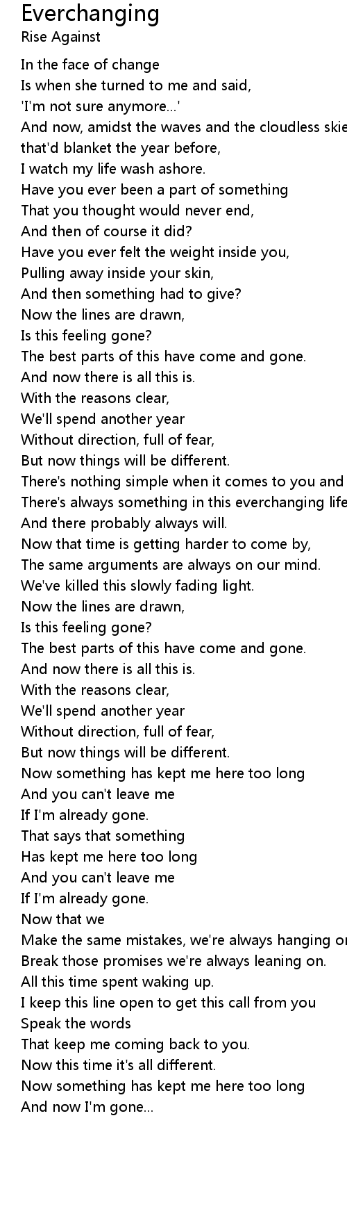 There's always something in this everchanging life, |
