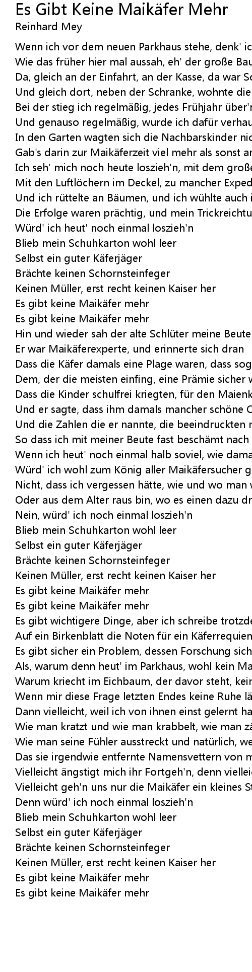 | Song | Es Gibt Keine Maikäfer Mehr |