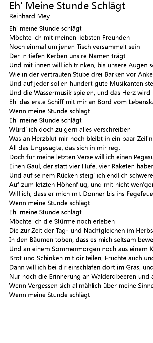 | Und die Wassermusik spielen, und das Herz wird mir aufgeh' n | |