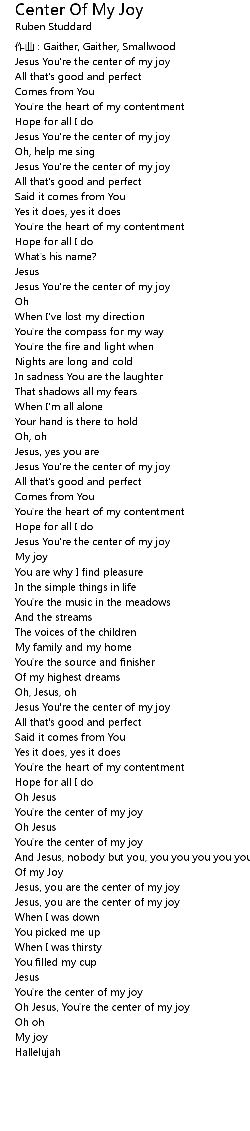 | Oh Jesus, You' re the center of my joy | |