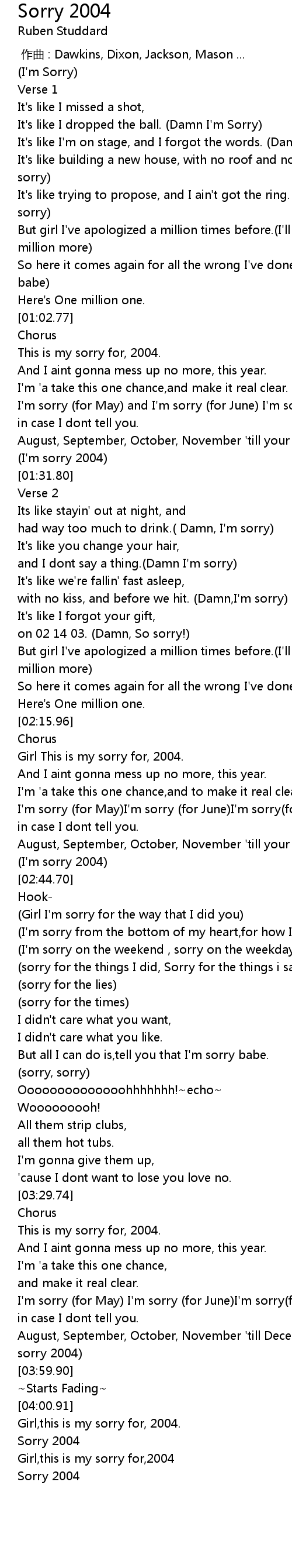 | [04:01.59] | Girl, this is my sorry for, 2004. |