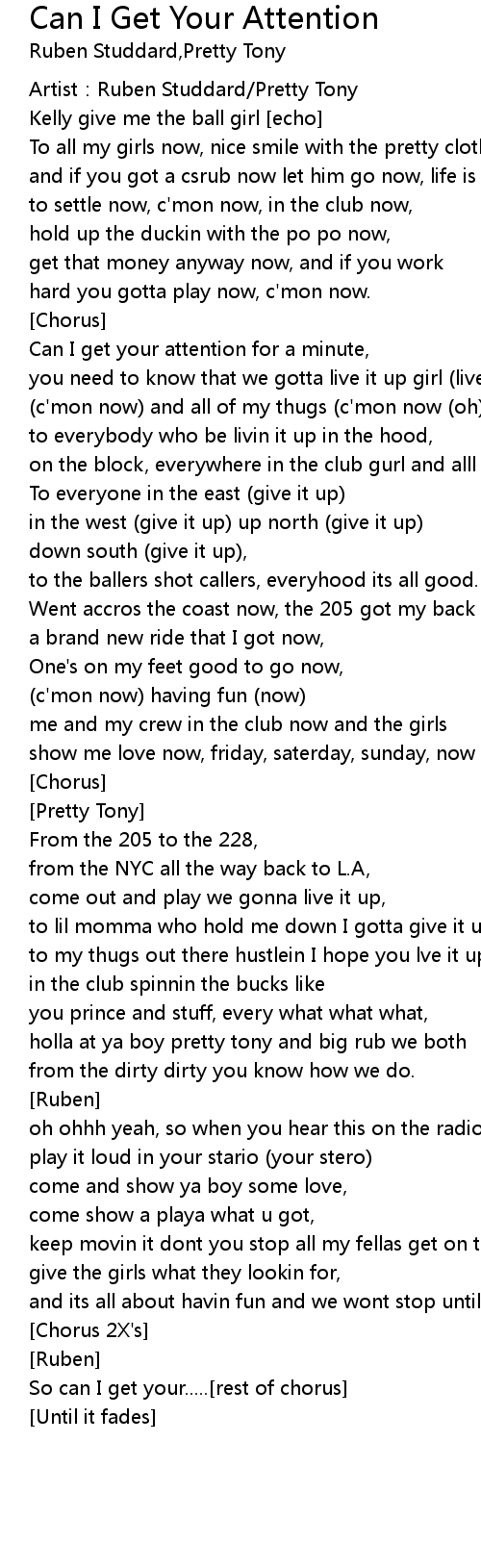 | Song | Can I Get Your Attention |