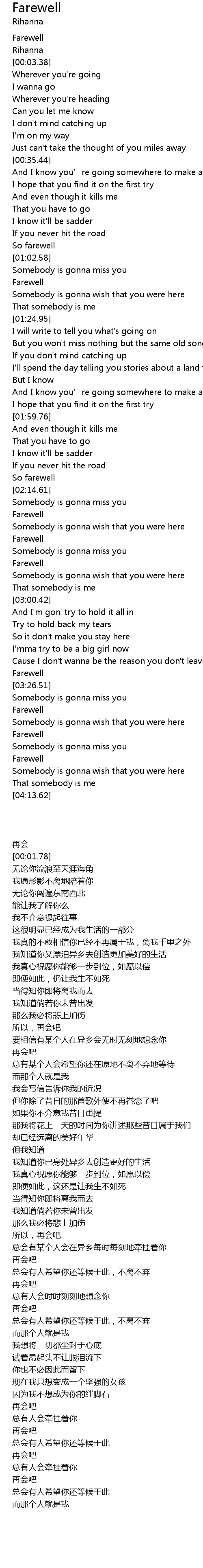 | [03:23.60] | Farewell |