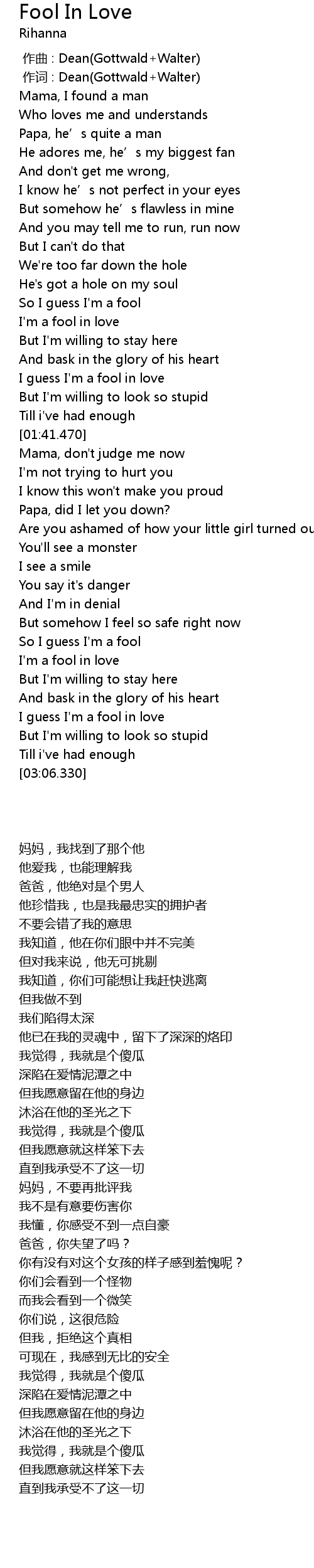 | [01:25.590] | I guess I' m a fool in love |