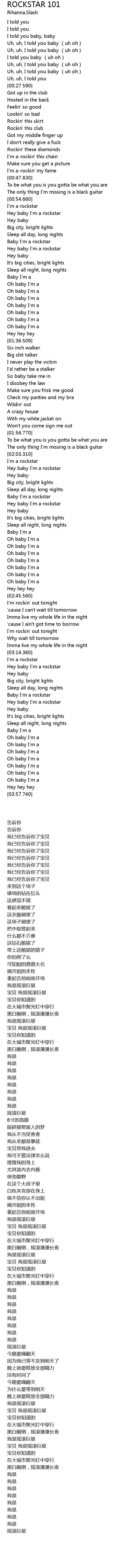 | [03:17.520] | Hey baby I' m a rockstar |