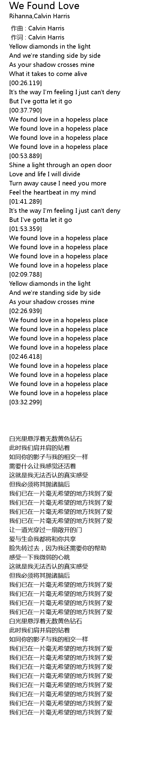 | [03:15.899] | We found love in a hopeless place |