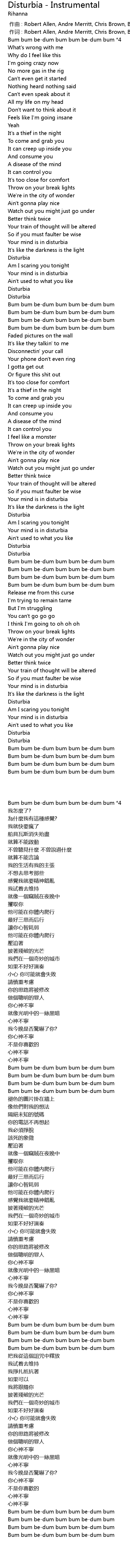 | [03:33.300] | Disturbia |