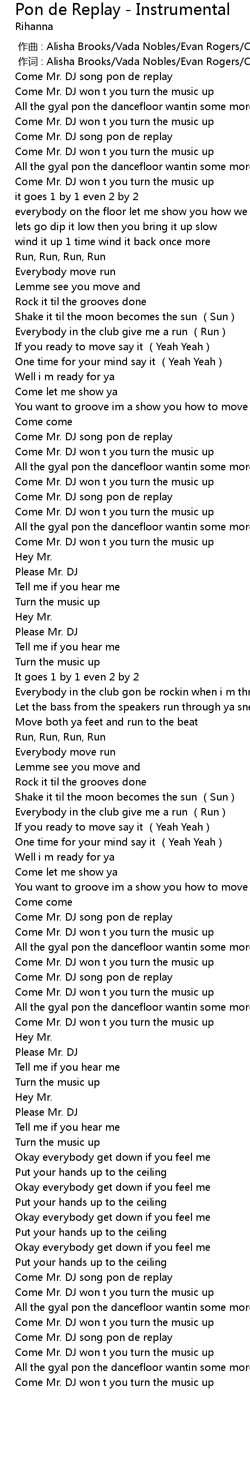| [03:04.95] | Come Mr. DJ song pon de replay |