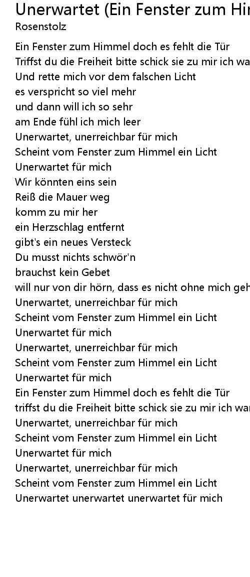 | Song | Unerwartet (Ein Fenster zum Himmel) |